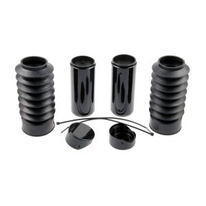 CULT-WERK, 6-PIECE FORK TUBE COVER KIT. GLOSS BLACK WITH RUBBER FORK B