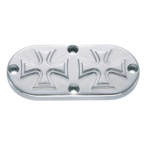 HELLS KITCHEN CHOPPERS, DERBY COVER MALTESE CROSS. POLISHED CNC MACHIN