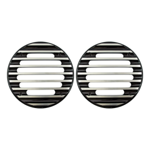 COVINGTONS, FINNED SPEAKER COVERS. SMALL. BLACK BLACK ANODIZED ALUMINU