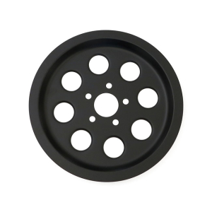 PULLY COVER, 'HOLES' 66T. BLACK MATTE BLACK. FULLY COVERS THE OEM REAR