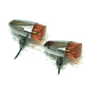 BULLET TURN SIGNALS, FLAT LENS. CHROME AMBER LENS. INCLUDES BULB. WITH