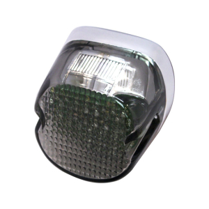 MINI LED TOMBSTONE TAILLIGHT, CHROME RED LENS WITH WHITE LEDS. THIS ON