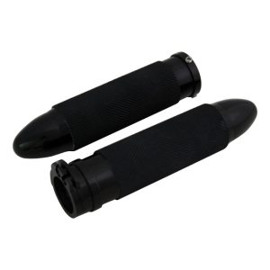 HANDLEBAR GRIP SET, BULLET. BLACK BLACK ANODIZED. MACHINED ALUMINUM HA