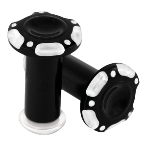 CPV, SKULL HANDLEBAR GRIP SET. BLACK CNC MACHINED BILLET BLACK CONTRAS