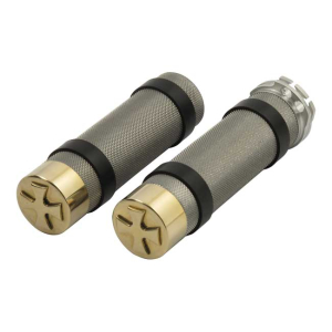 HANDLEBAR GRIP SET, BULLET. GOLD GOLD ANODIZED. MACHINED ALUMINUM HAND