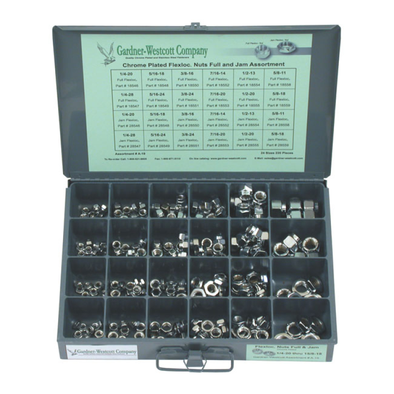 FLEXLOC NUT ASSORTMENT TRAY CHROME, WITH REGULAR & JAMNUT STYLE FLEXLO